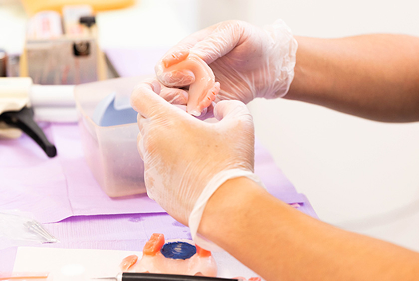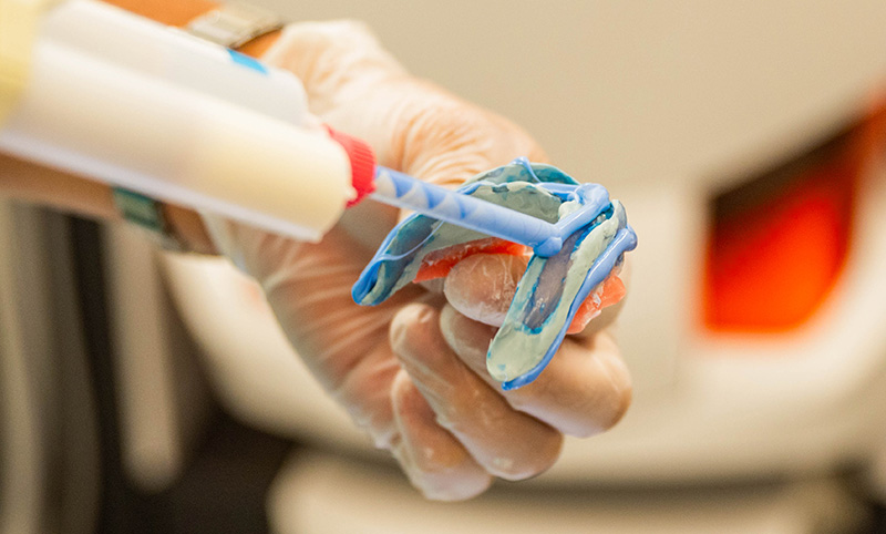 「KGKデンチャー」は動きづらいうえに外れにくく、粘膜にぴったり合うことで噛むときの圧力が分散されるため、痛みも出にくく、安定した装着で安定剤も必要ありません。それを可能にしているのは「型取り」にあります。